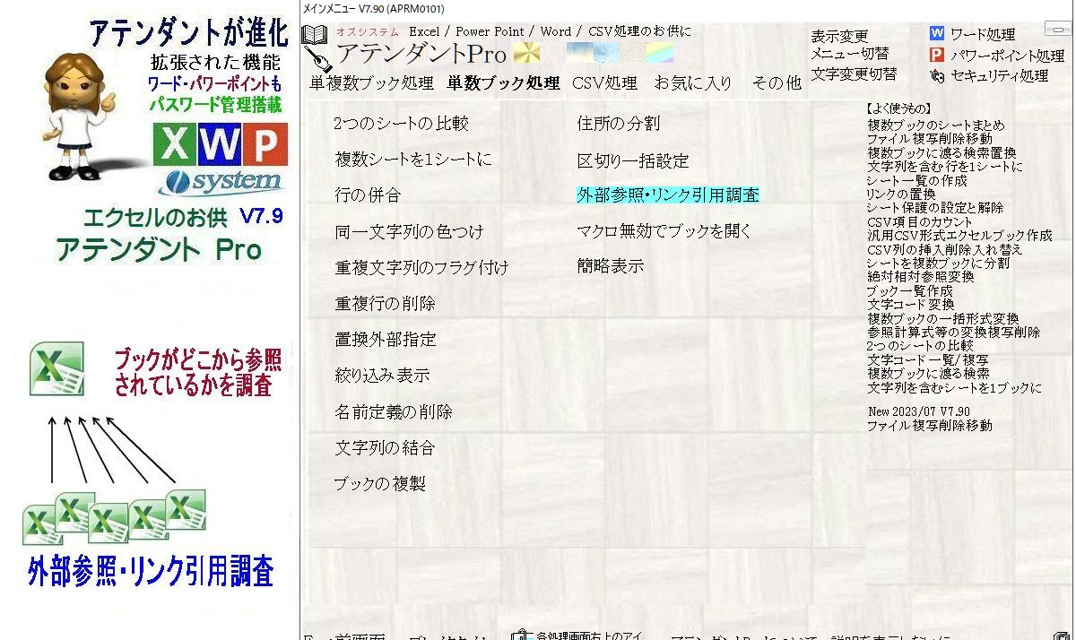 アテンダントProをV7.9にバージョンアップ。ブックがどのブックから参照されているかを調査する外部参照・リンク引用調査をリリース