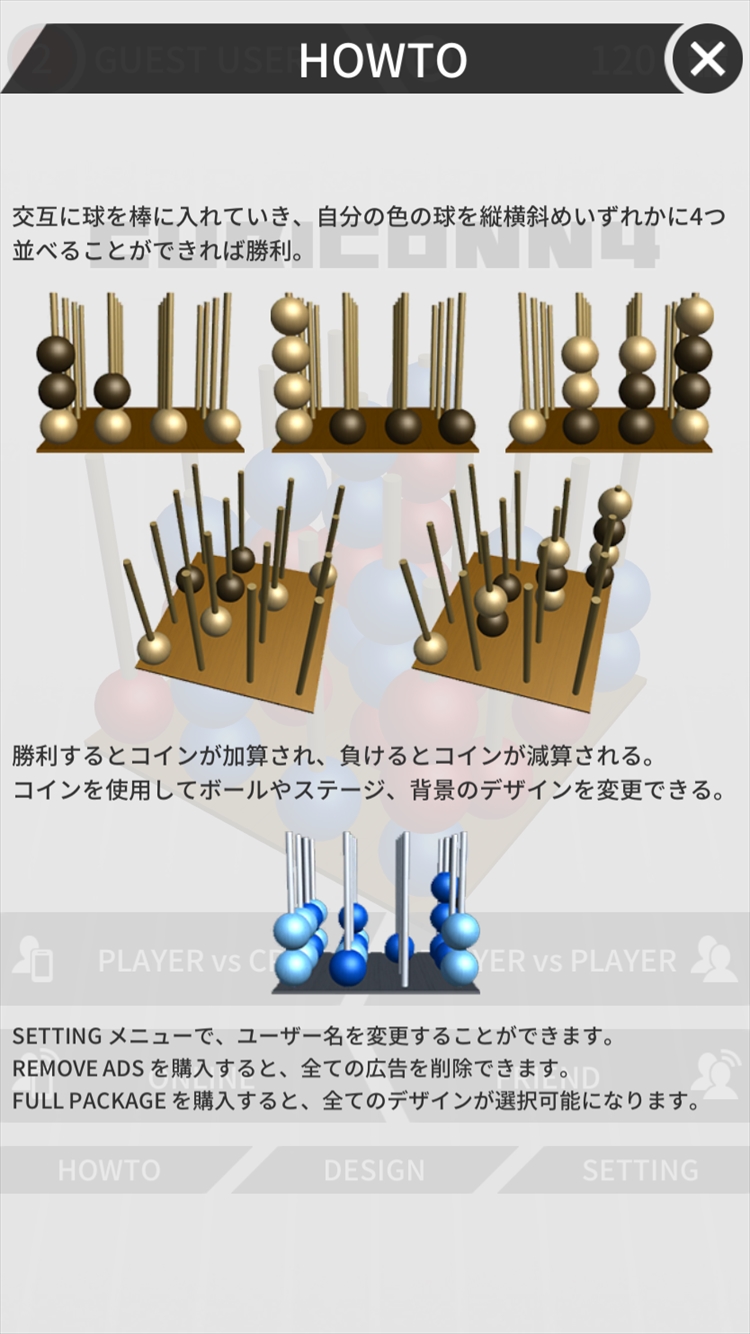 獲得したコインを使いDESIGNメニューより球・盤面・背景のデザインを変更することができ、選択したデザインでゲームを遊ぶことができる。