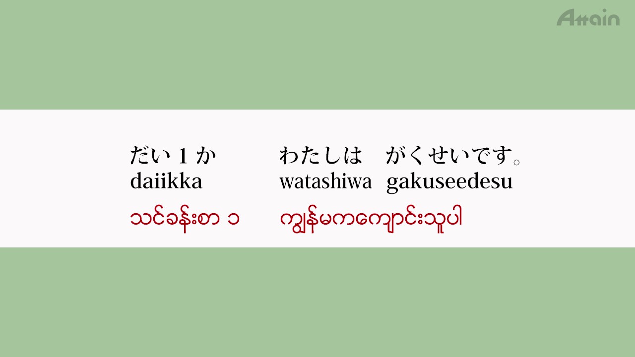 သင္ခန္းစာ(၁) ကြ်န္မကေက်ာင္းသူပါ။