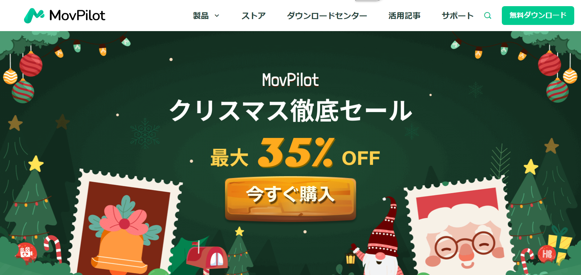 2024年のクリスマスシーズン、MovPilotの最大35%オフセールは見逃せません!年末年始を充実させるために、MovPilotの動画ダウンロードツールをこの機会に手に入れて、もっと快適に過ごしましょう。限定キャンペーンでお得にゲットできるチャンスをお見逃しなく!