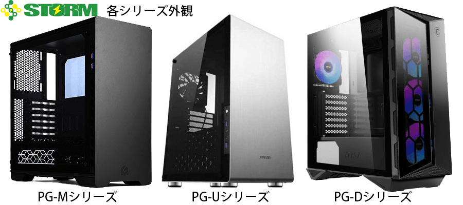 PG-Uシリーズは左サイドに強化ガラス製パネルを装備したアルミ仕様のミニタワーケースの計3種類をラインナップ。