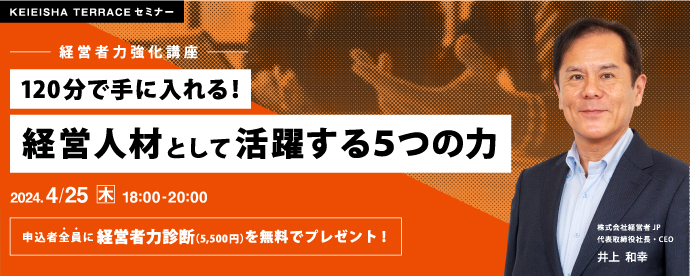 【KEIEISHA TERRACEセミナー】経営者力強化講座~120分で手に入れる! 経営人材として活躍する5つの力