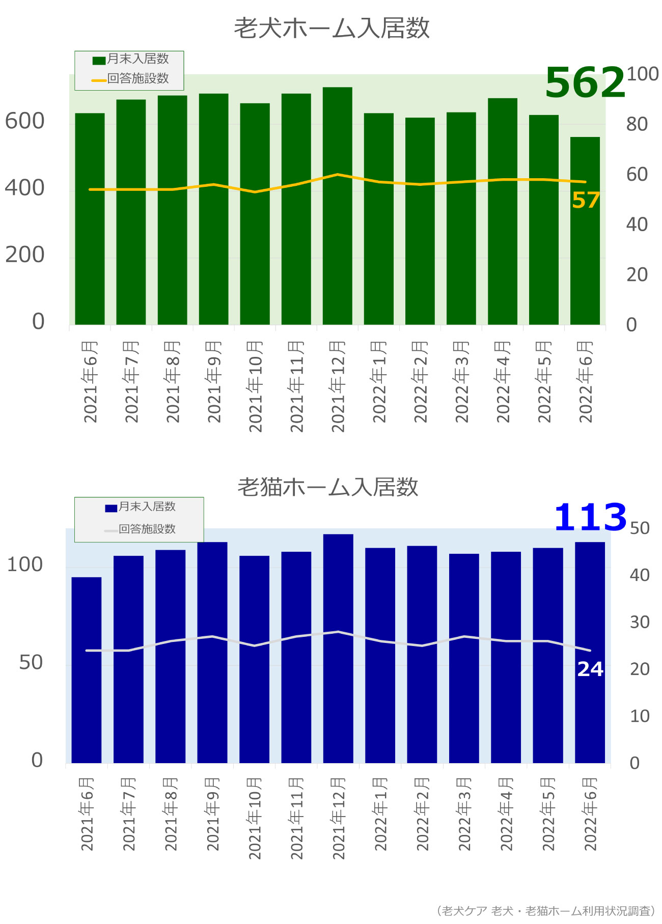老犬・老猫ホーム入居数調査(2022年6月)