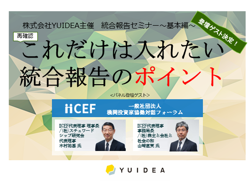 無料【10/18株式会社YUIDEA主催] 統合報告セミナー ~基本編~ 「再確認!これだけは入れたい統合報告のポイント」 登壇ゲスト(IICEF)の決定