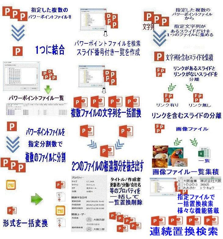 ・複数パワーポイントファイルに渡る検索 ・複数パワーポイントファイルに渡る置換
