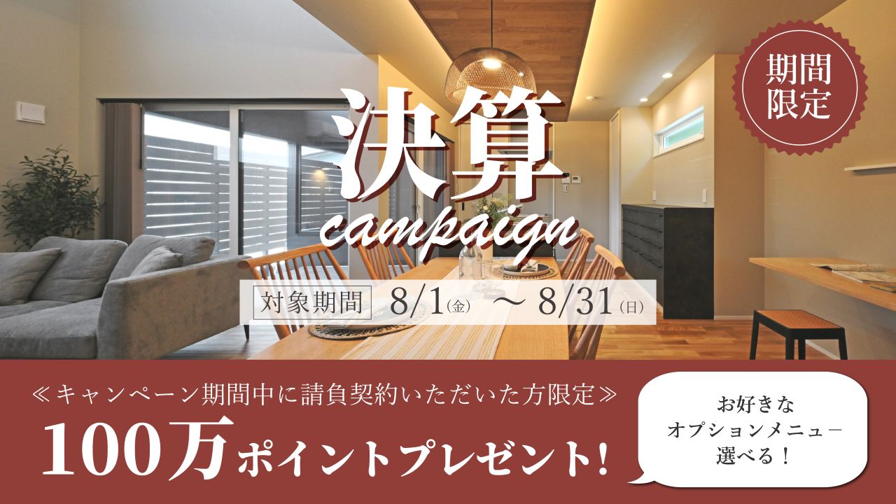 【株式会社匠工房】8月限定!注文住宅ご成約のお客様対象 決算キャンペーン
