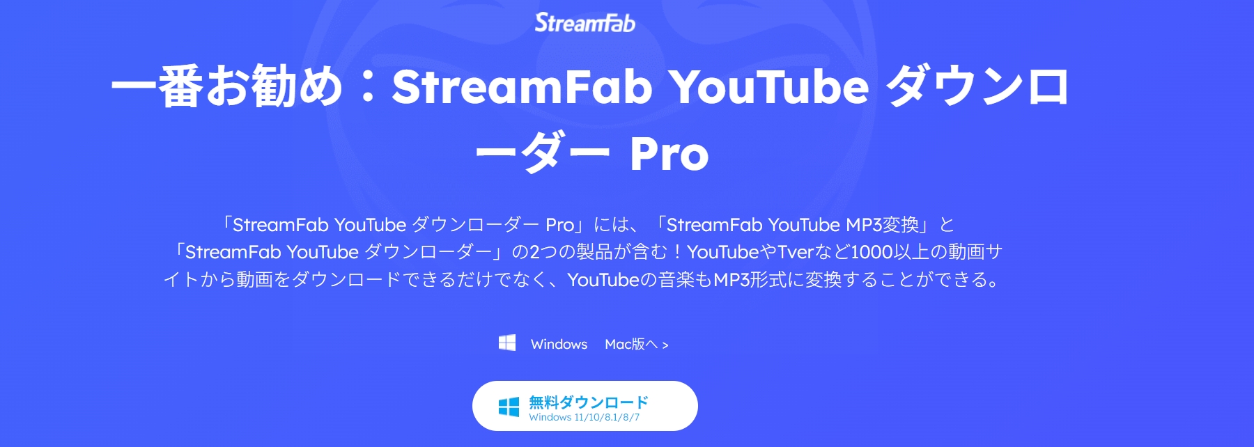 [StreamFab YouTube ダウンローダープロ版主な機能]