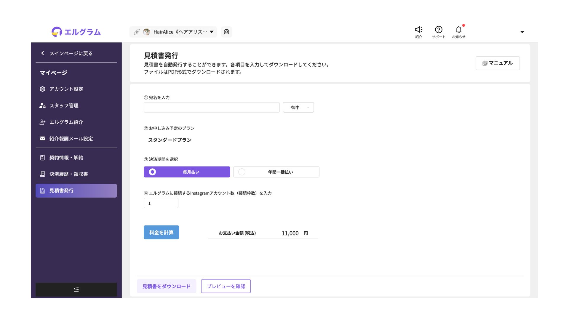 インスタグラム自動化ツール「エルグラム」に見積書発行機能を追加