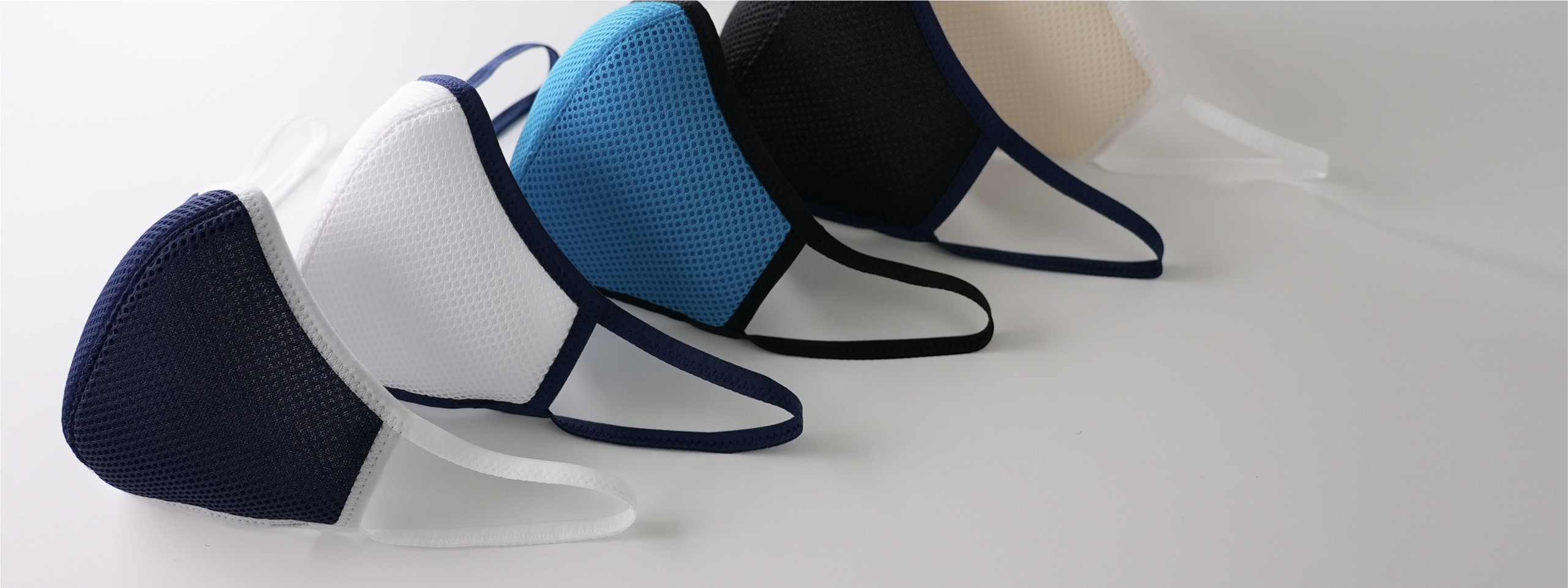 口元に適度な空洞をつくった3D布マスクです。外側はメッシュ素材で通気性もよく、見た目もおしゃれ。内側はさらりとした高級スムース素材・吸水・速乾に優れた素材から選ぶことが可能です。