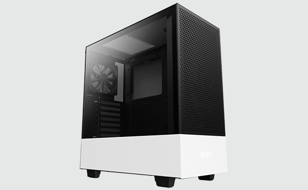 左サイドに強化ガラス製パネルを装備し、フロントメッシュ仕様のミドルタワーケースに