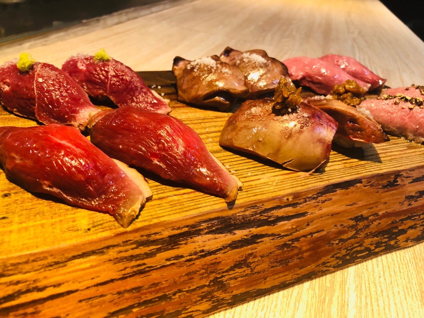 焼きや鴨の生ハムだけでなく、レバー、ハツ、砂肝、舌などの希少な鴨の