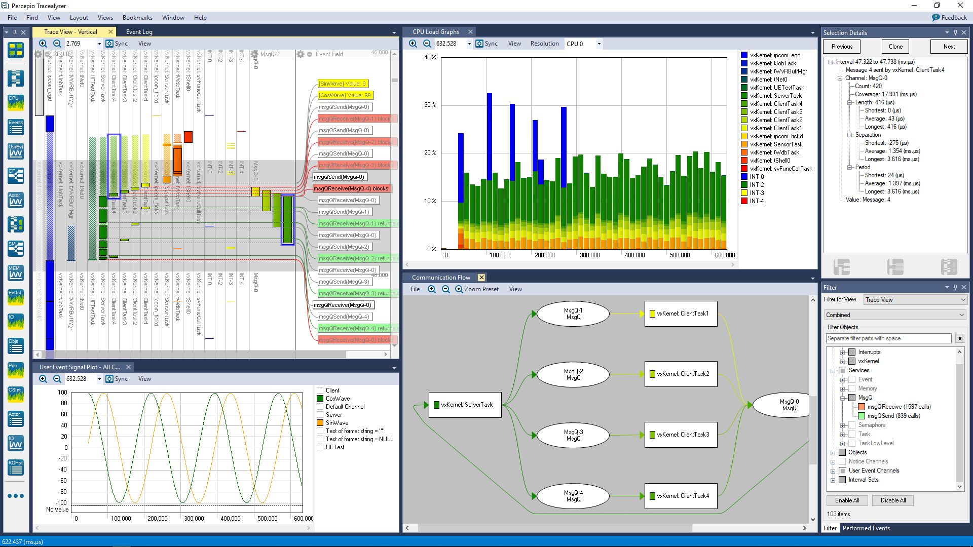ユーザーインターフェイスを近代化し、ドッキングウィンドウとタブ付きウィンドウの両方を処理するウィンドウマネージャを追加しました。つまり、画面上でより多くの情報を利用できるようになりました。複数のトレースを別々のウィンドウで開くことができます。また、お気に入りのウィンドウレイアウトを保存して、Tracealyzerが実行中にそれを記憶できるようにすることもできます。