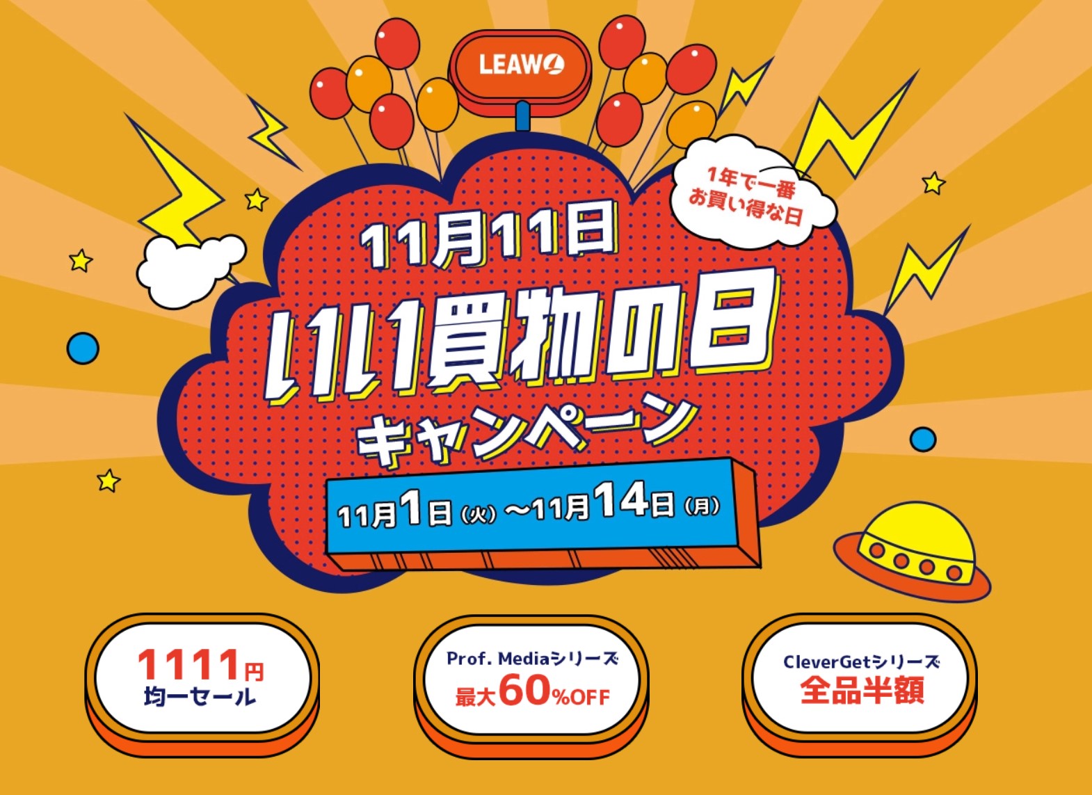 Leawo 11月11日いい買物の日キャンペーン開催中!人気商品が週替わりに1111円均一セール&人気セット60%OFF超お得!更に特定商品限定で1000円現金キャッシュバック!