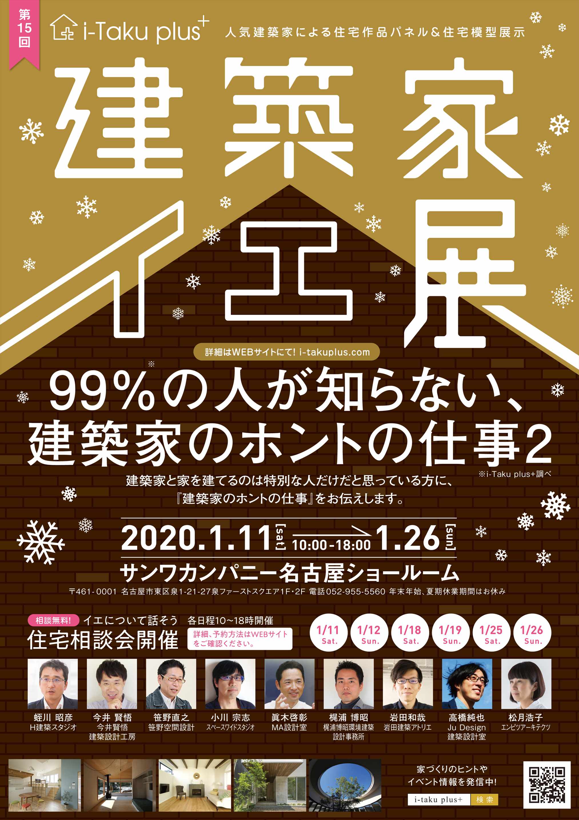 「サンワカンパニー」とコラボで2020年1月11日(土)~26日(日)まで「第15回 建築家イエ展」を開催します。