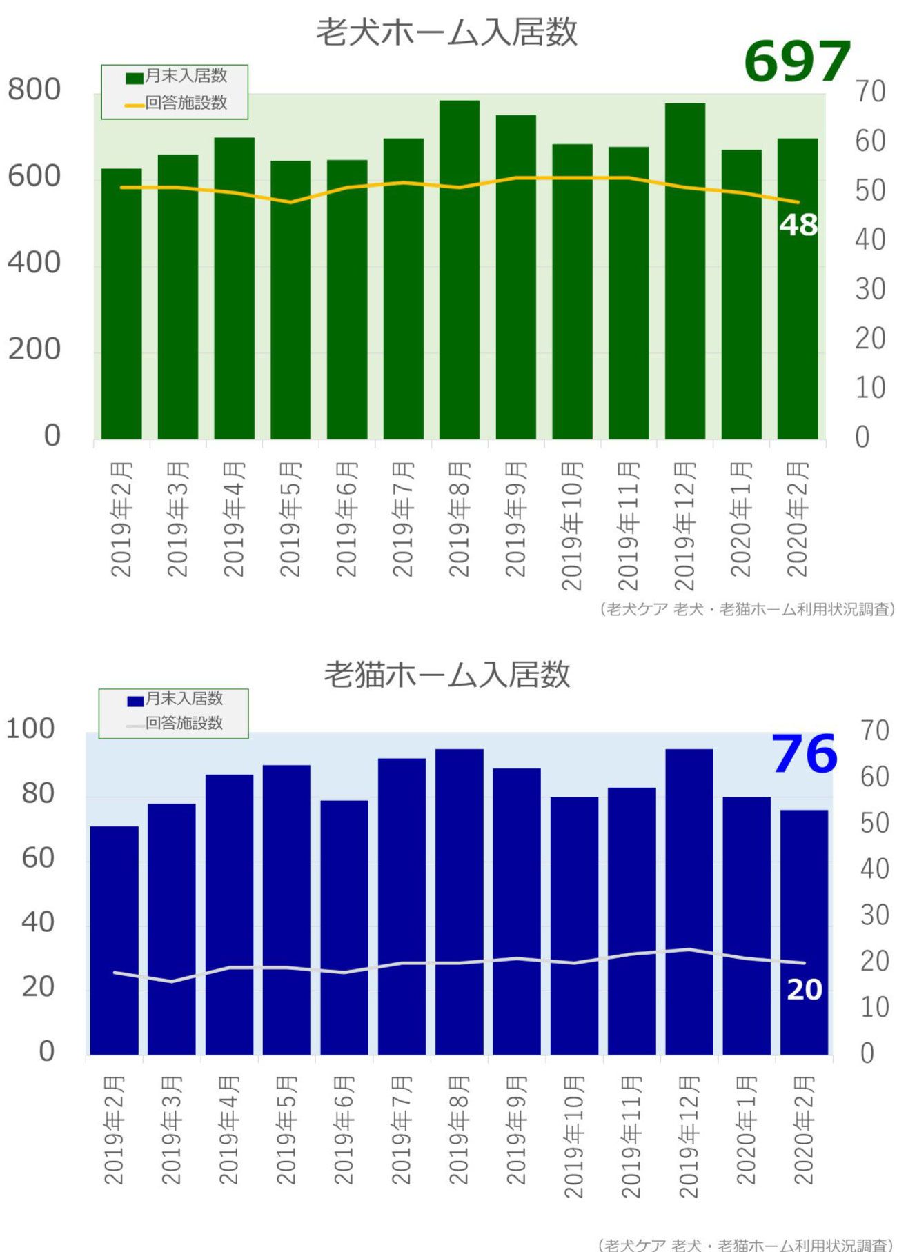 老犬・老猫ホーム入居数調査(2020年2月)