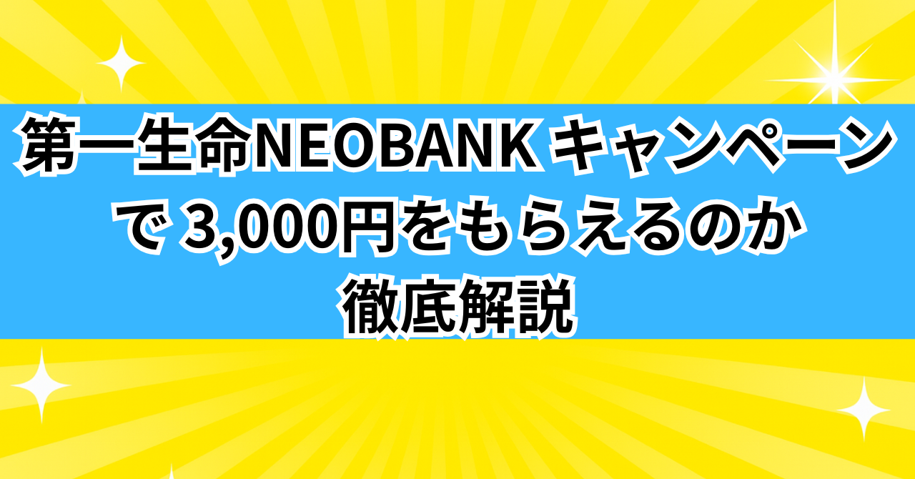 第一生命NEOBANKキャンペーンで 3,000円をもらえるのか徹底解説
