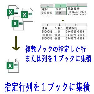 複数のブックから指定した行または列のデータを1ブック(1シート)に集積します。