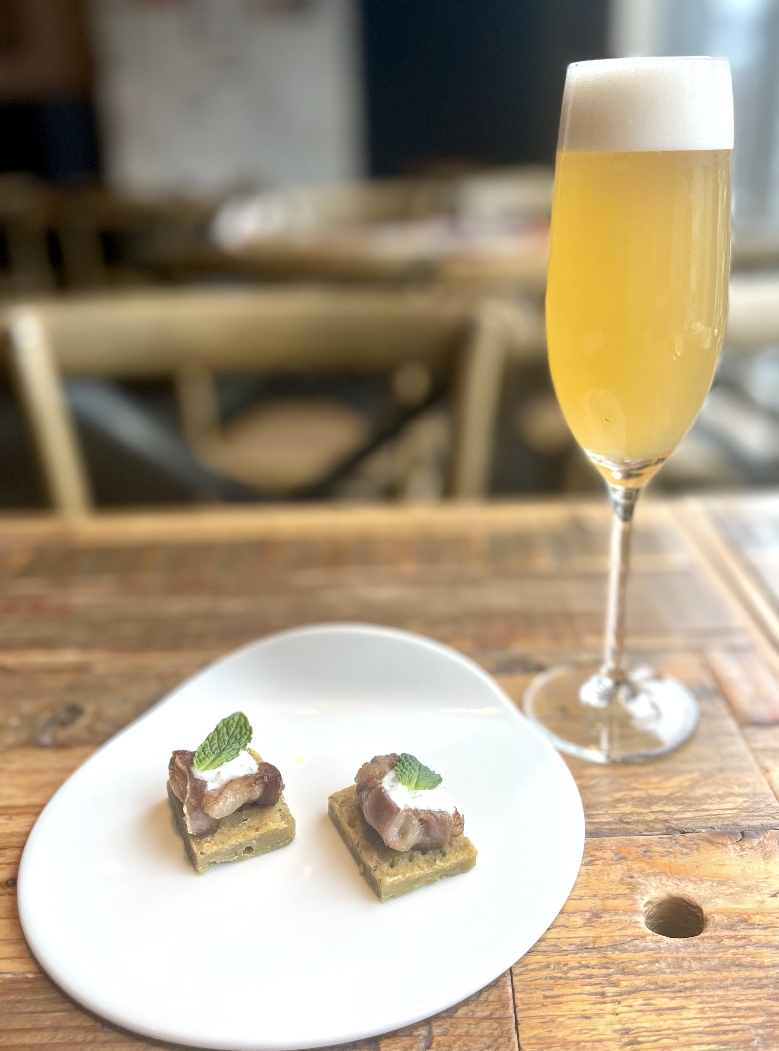 厚真羊のベーコン、ひよこ豆のサブレとヨーグルトソース