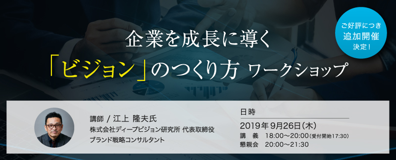 満席御礼・キャンセル待ちが続出となった人気企画、企業を成長に導く「ビジョン」のつくり方ワークショップ追加開催決定!