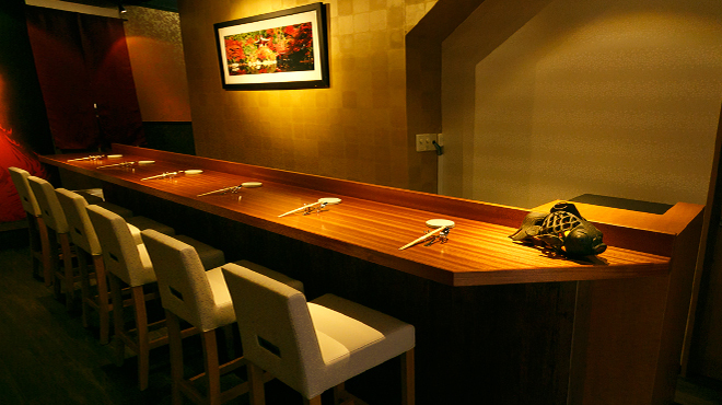 ゆったりした板前カウンターは全8席。接客と料理のクオリティーを保つため、1日4組8名様までに限定しております。