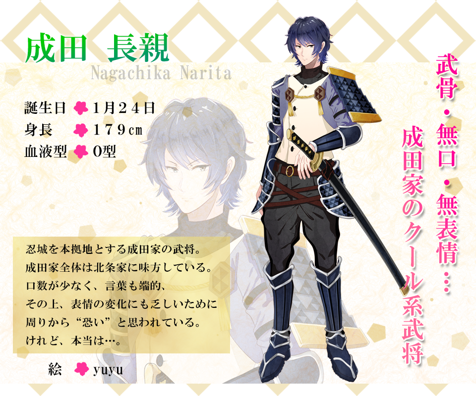 明るく男らしい幼馴染、優しく穏やかな名主、クールで不愛想な武将…など様々なキャラクターが登場します。今後もキャラクターは追加予定ですので、是非ご期待ください。