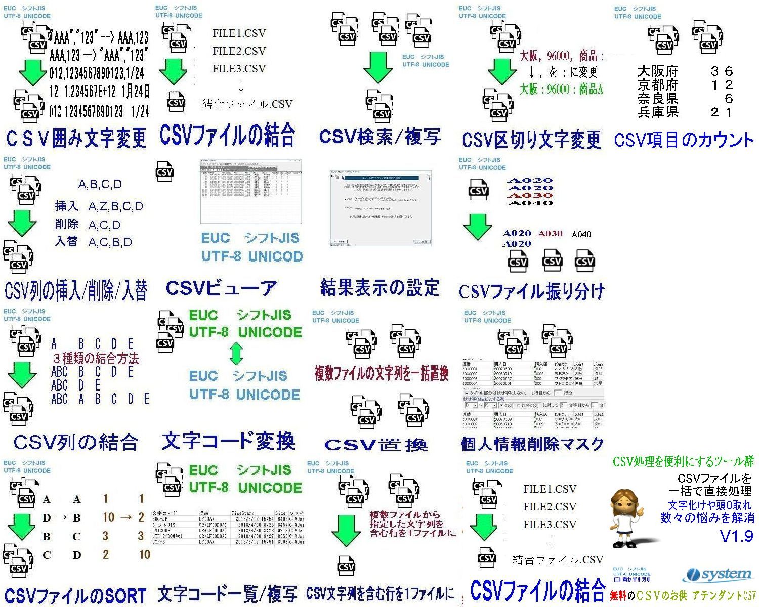 CSV処理をより便利にする無料ツール集「CSVのお供 アテンダントCSV」V1.9にバージョンアップ