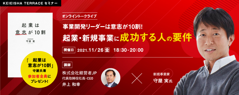 【KEIEISHA TERRACEセミナー】オンライントークライブ 事業開発リーダーは意志が10割! 起業・新規事業に成功する人の要件