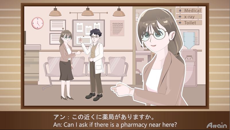 アン:この近くに薬局がありますか。