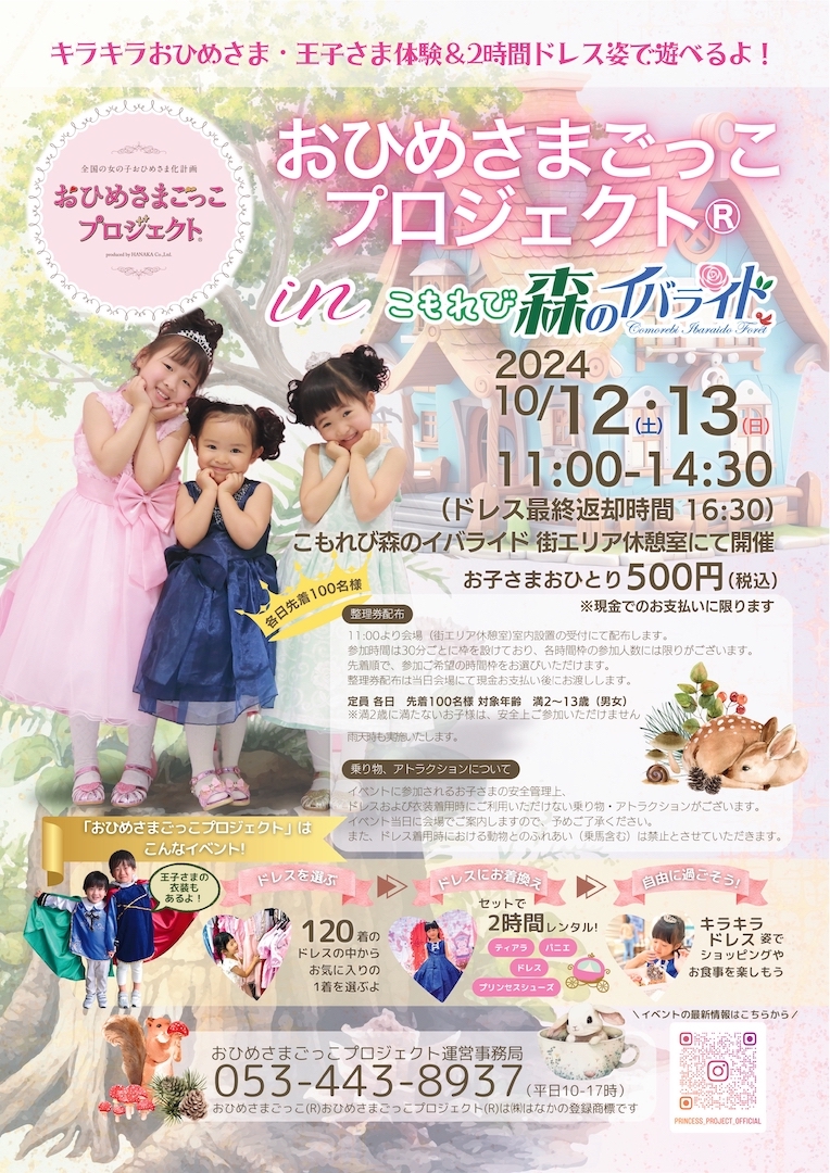 2024年10月12日(土)13日(日) キラキラおひめさま・王子さま体験&2時間ドレス姿で遊べるよ! おひめさまごっこプロジェクト(R)inこもれび森のイバライド