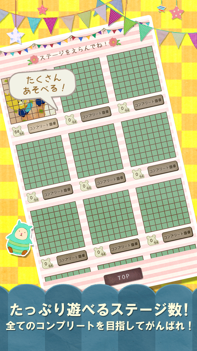 ゲーム終了時に開けたマスが保存されるので、何度もチャレンジして全てのマスを開けていきましょう。
