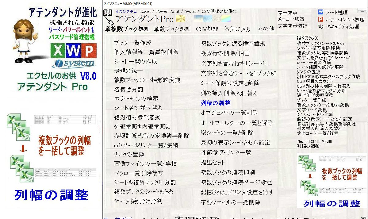 タイトル:(Excel/PowerPoint/Word/CSV処理のお供に)アテンダントPro V8.00にバージョンアップ
