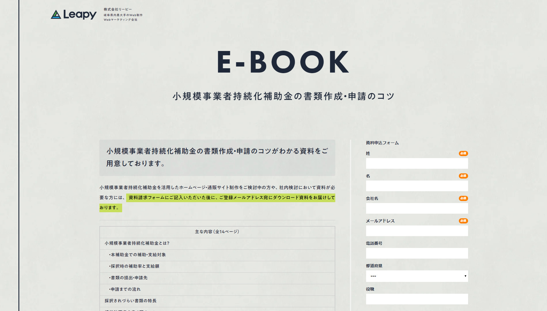 株式会社リーピー(本社:岐阜市/代表取締役:川口 聡/以下、当社)は、令和2年5月1日より、小規模事業者持続化補助金の書類作成と申請のコツをまとめた資料を公開しました。