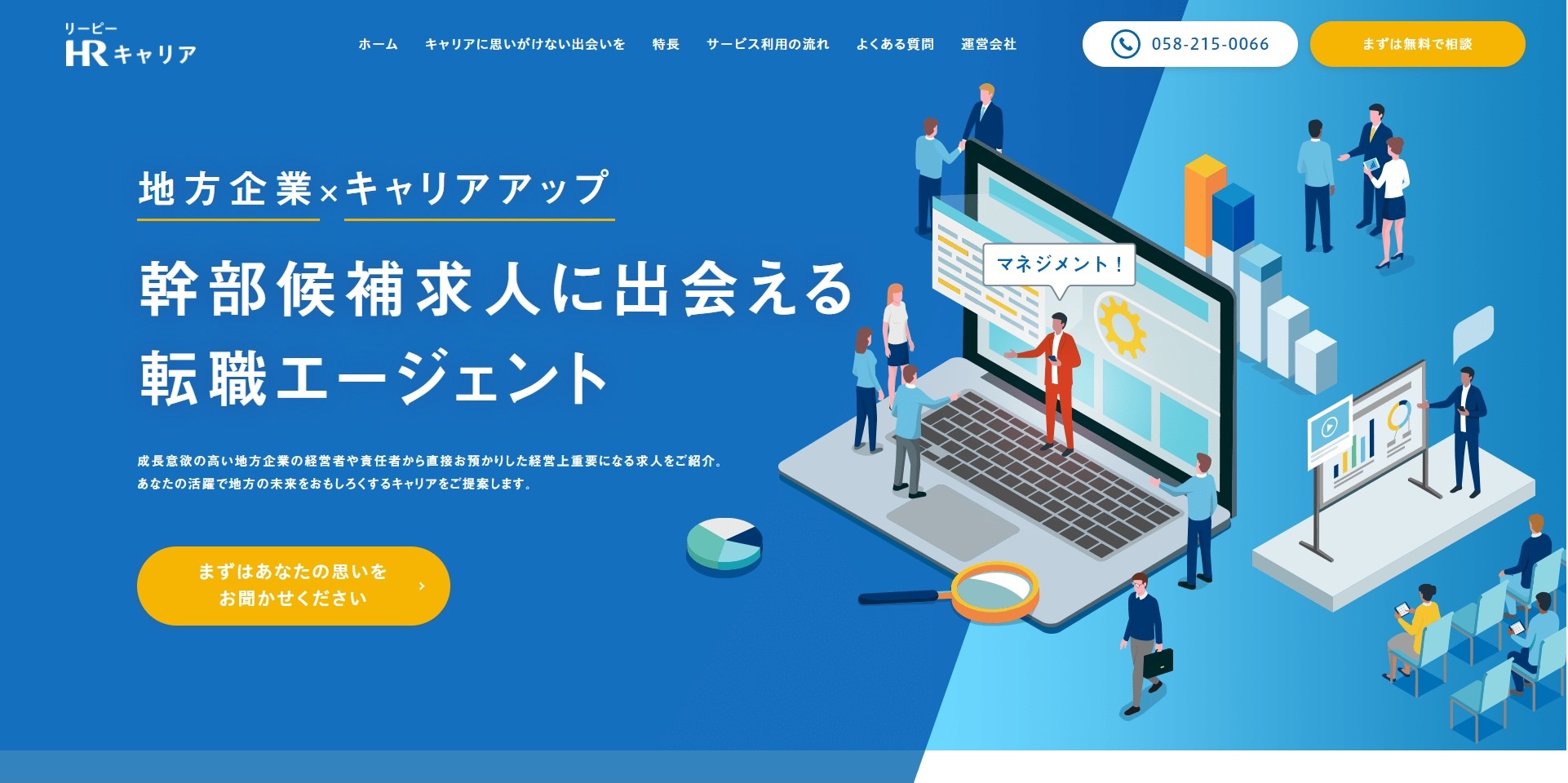 リーピー・HRキャリアは、『地方の未来をおもしろくする』という当社ビジョンをもとに、「地方企業×キャリアアップ」に特化した転職エージェントサービスです。
