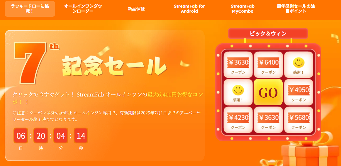 StreamFab 7周年記念セール開催中!7月1日までの期間限定チャンス!