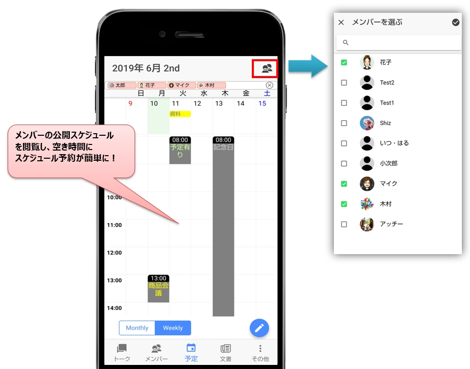▶ スマートフォンでもメンバーのスケジュールを閲覧し、空き時間にスケジュール予約が簡単に(新機能)