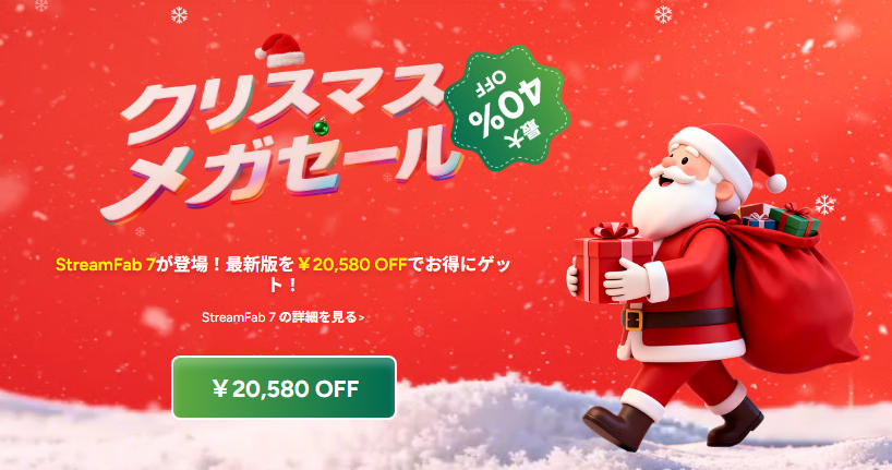StreamFab 7があれば、そんな悩みは一切不要です。今回、StreamFabは皆様の冬休みをより豊かにするため、大きなクリスマスセールをスタートしました。