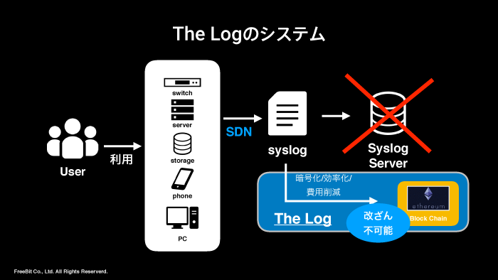 フリービット株式会社(本社:東京都渋谷区、代表取締役社長:田中 伸明、以下「フリービット」)は、Trusted Internet構想の元に取り組んできたブロックチェーン関連技術を活用し、アルプスアルパイン株式会社(本社:東京都大田区、代表取締役:栗山年弘)の子会社で、カーナビゲーションをはじめとしたカーエレクトロニクス製品の開発・製造・販売を行うアルパイン株式会社(本社:東京都大田区、代表取締役社長: 米谷 信彦、以下「アルパイン」)との業務提携第二弾として、ブロックチェーンを利用して、あらゆるインターネット/IoTインフラ(=オフチェーン部分)におけるシステム運用情報の改ざんリスクに対応する「The Log」を共同開発したことお知らせいたします。また、両社は「The Log」を活用し、より安心・安全なサービスの提供を目的とした自社内のシステム・サービスのシステム運用情報の保管を開始しました。
