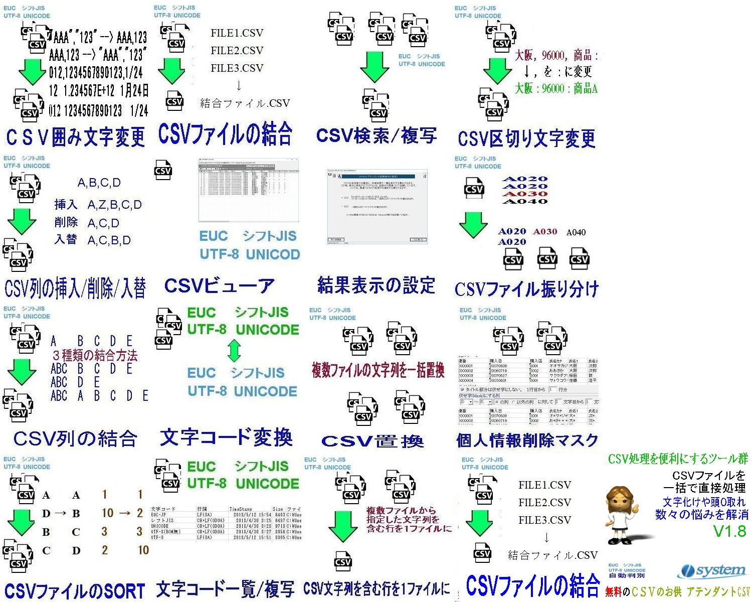 CSV処理をより便利にする無料ツール集「CSVのお供 アテンダントCSV」V1.8にバージョンアップ