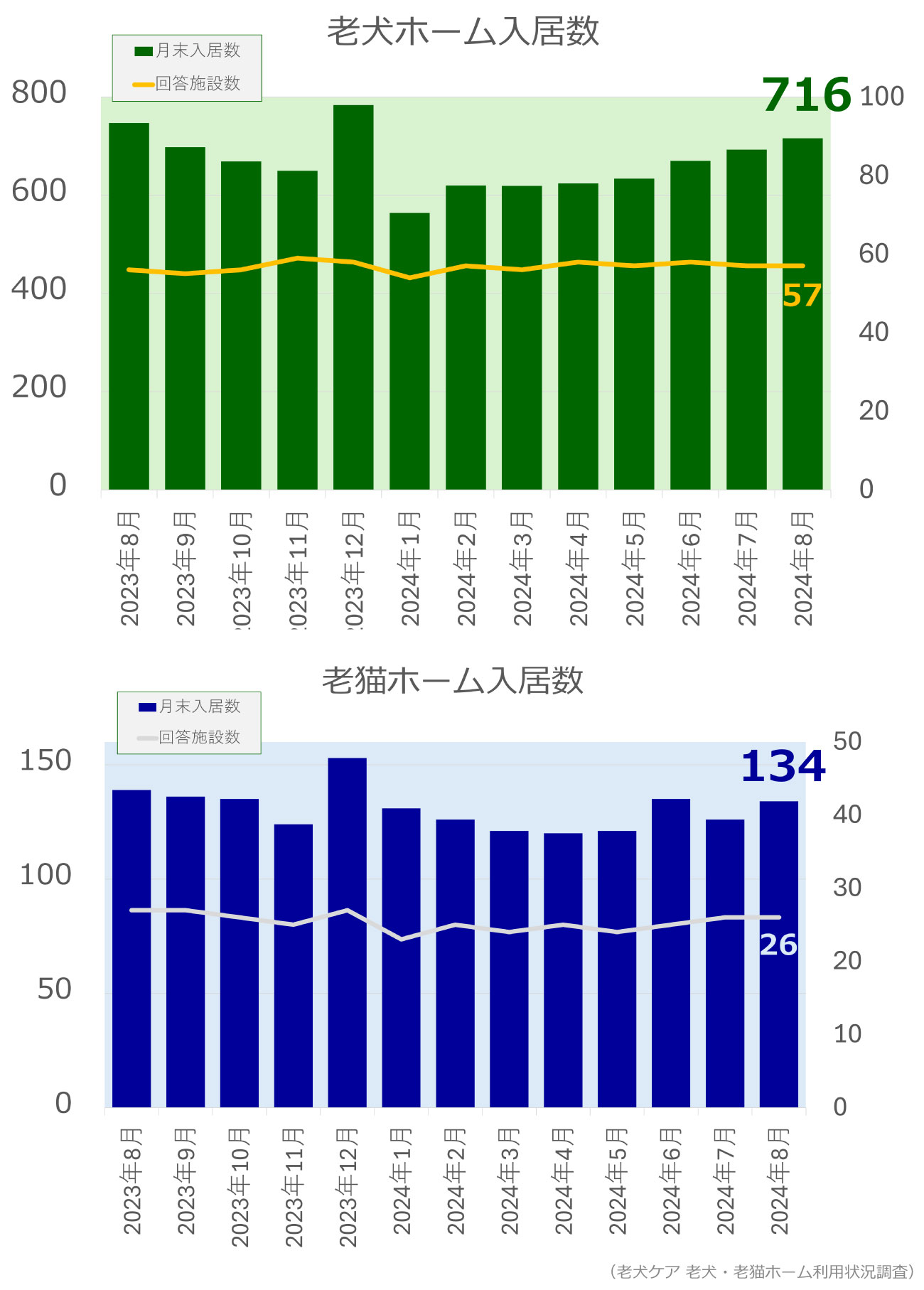老犬・老猫ホーム入居数調査(2024年8月)