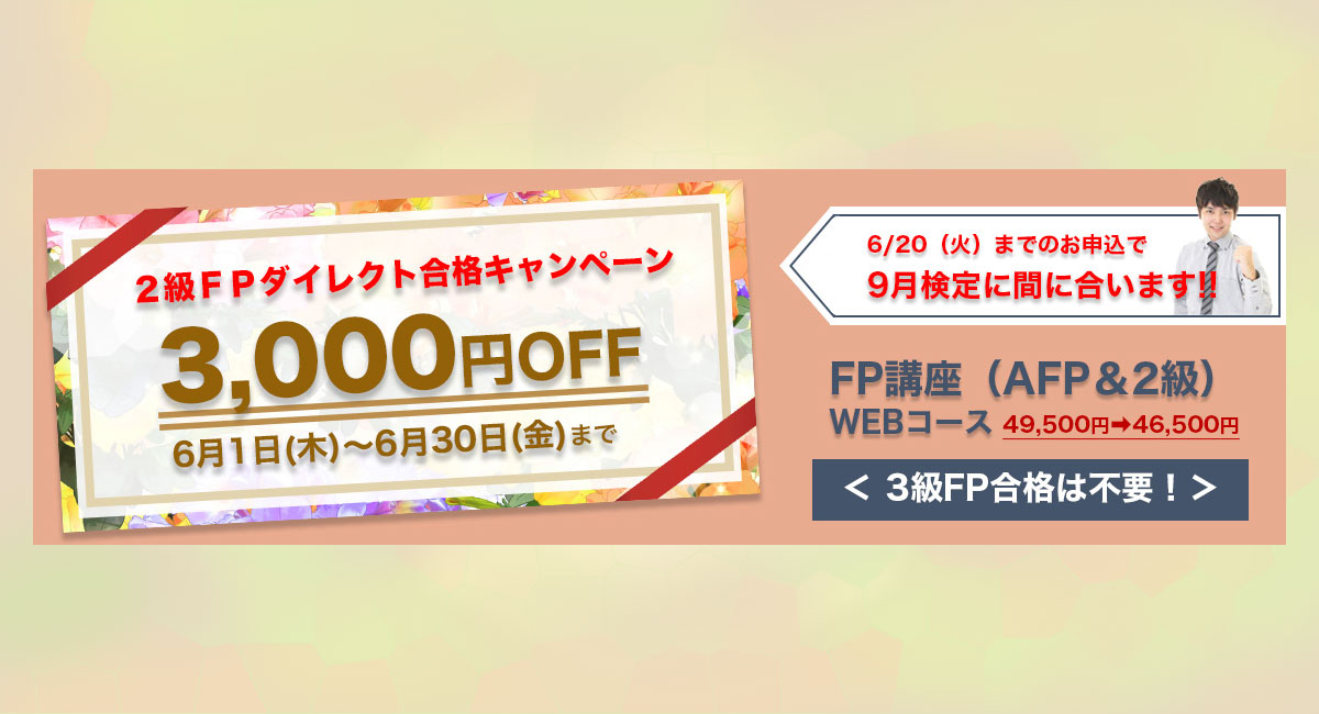 『FP講座(AFP&2級)WEBコース』の特別価格キャンペーンは、6月30日(金)まで。