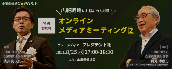 【KEIEISHA TERRACEセミナー】企業価値協会主催 <オンラインメディアミーティング>特別参加枠 ゲストメディア:プレジデント社