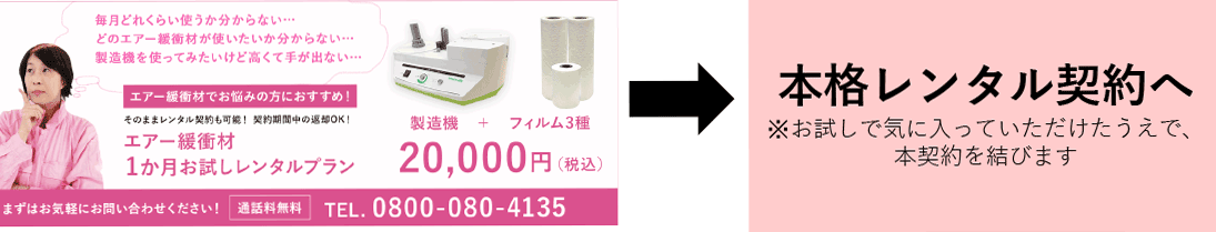 エアー緩衝材フィルムを定期的にご購入いただくことでレンタルが可能です。