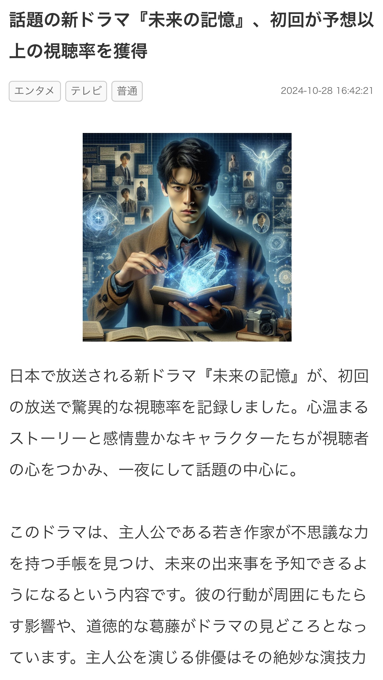 話題の新ドラマ『未来の記憶』、初回が予想以上の視聴率を獲得
