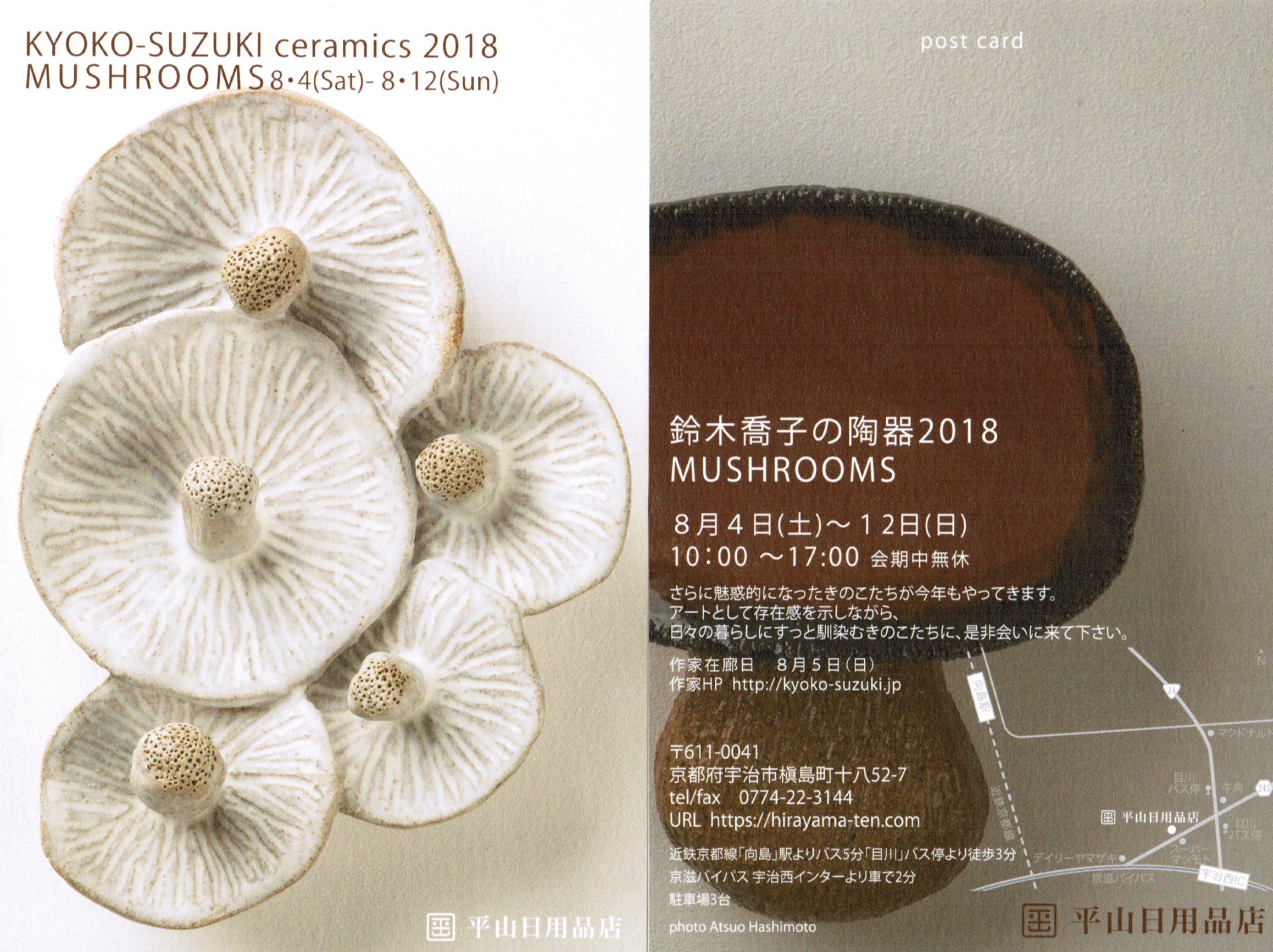 昨年大好評を博した「鈴木喬子の陶器2017 CERAMIC MUSHROOMS展」から早くも一年。