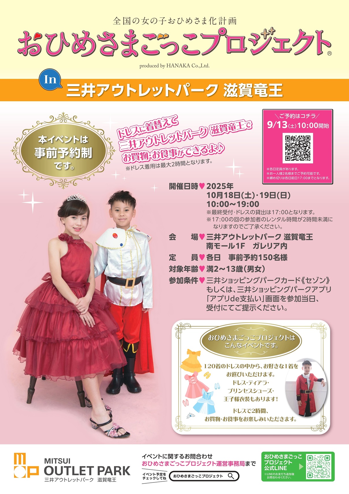 10/18(土)-19(日) は 滋賀県 三井アウトレットパーク 滋賀竜王 でプリンセス体験