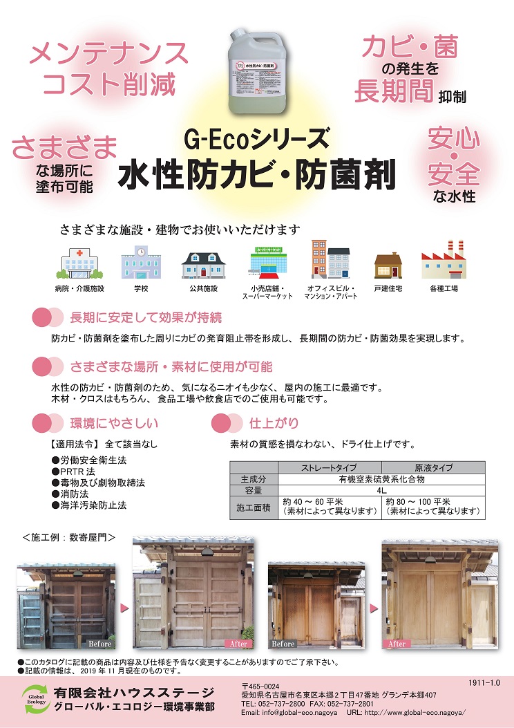 新製品G-Ecoシリーズ環境対応型水性防カビ・防菌剤 ストレートタイプ