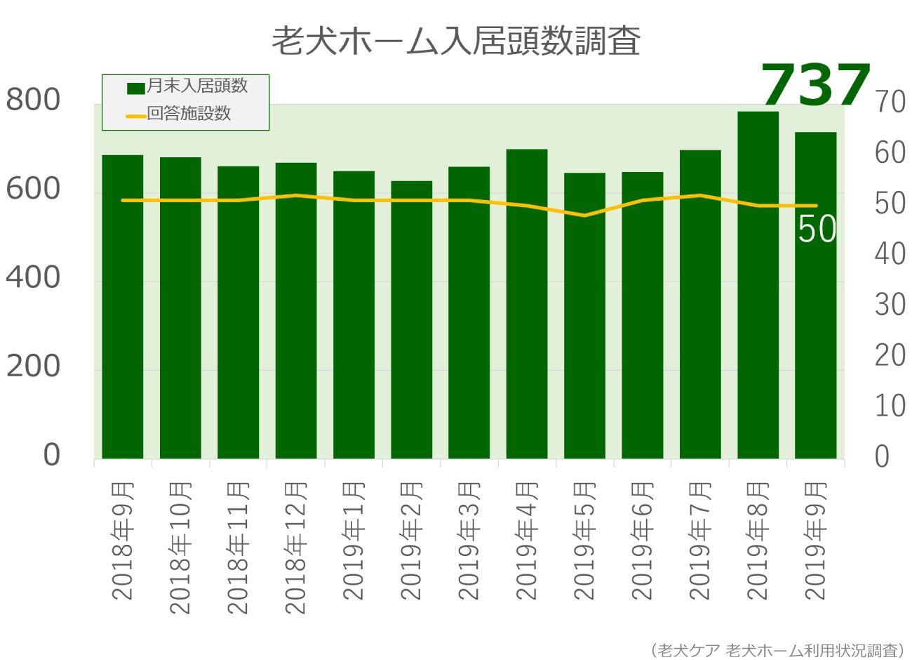 ◎2019年9月末時点の老犬ホーム入居頭数は737頭