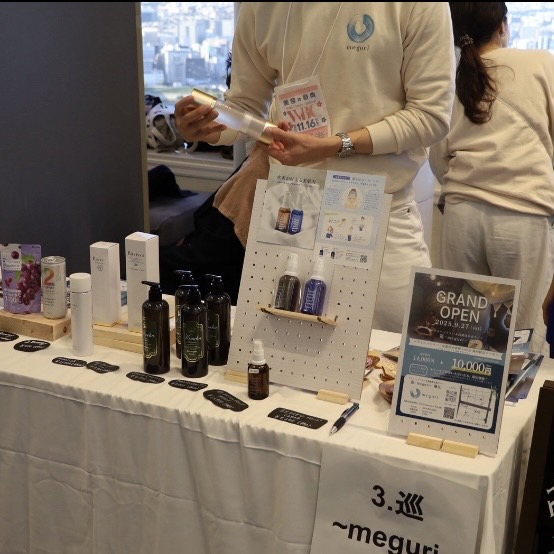 当イベントが掲げる理念である「関西の美容価値を高め、多くの女性が前向きに変化できる場をつくる」 という想いが、巡~meguri~の目指す、「めぐりを育み、心と身体を理想のコンディションへ」というビジョンと重なり、今回の参加を決意いたしました。さらに、サロンのある新町・堀江エリアがより多くの方に親しまれ、地域が活性化していくきっかけをつくりたいという想いも後押しし、今回の出店へとつながりました。