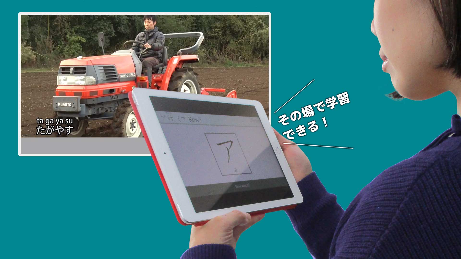 日本では外国人技能実習生を受け入れる制度が定着し、農業の技能実習生数も着実に増加する予定です。農業研修現場で技能実習生や受け入れ機関はどうやって効率よく日本語教育を実施するのが課題であることが多いでしょう。農業技能評価試験でも、講習の時間数、内容、実施場所等は運用要領等で示され、とりわけ日本語教育が重要視されています。日本語学校に通わせるか日本語講師を研修現場に出張に来てもらうかなどの対策はありますが、どれもかなりコストがかかります。この問題を解決するためには、アテインは日本語教材をiPad載せるレンタルサービルを提供いたします。