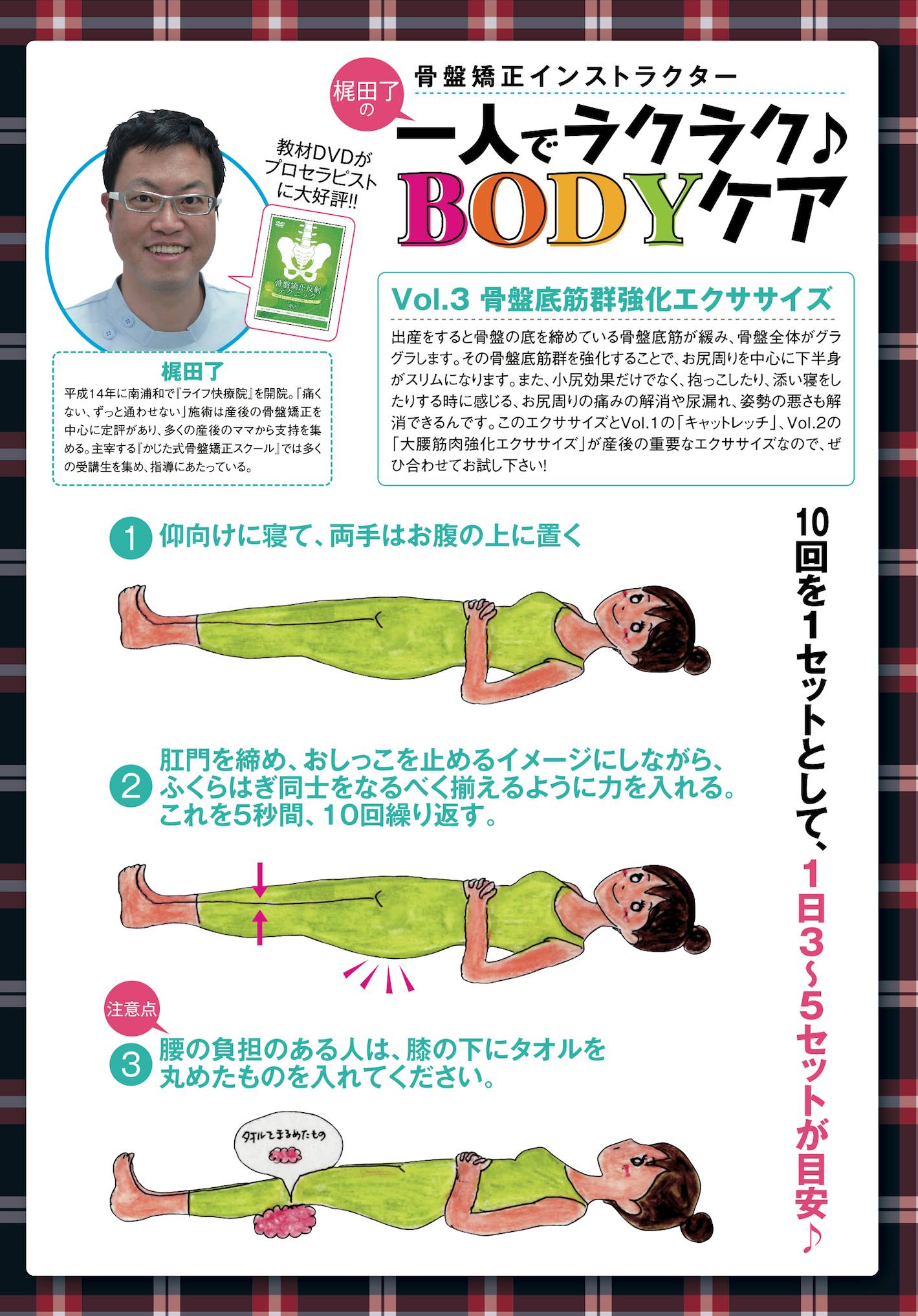 産後の女性が直面する「ぽっこりお腹」「尿もれ」「首と肩のコリ」といった悩みに焦点を当て、これらの共通の問題を解決するために専門家が開発したエクササイズです。